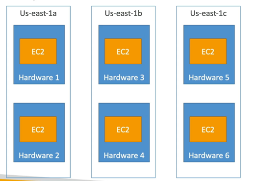 EC2 instance'lar **farklı fiziksel donanımlar** üzerinde ve **farklı AZ’lere yayılmış** olabilir.